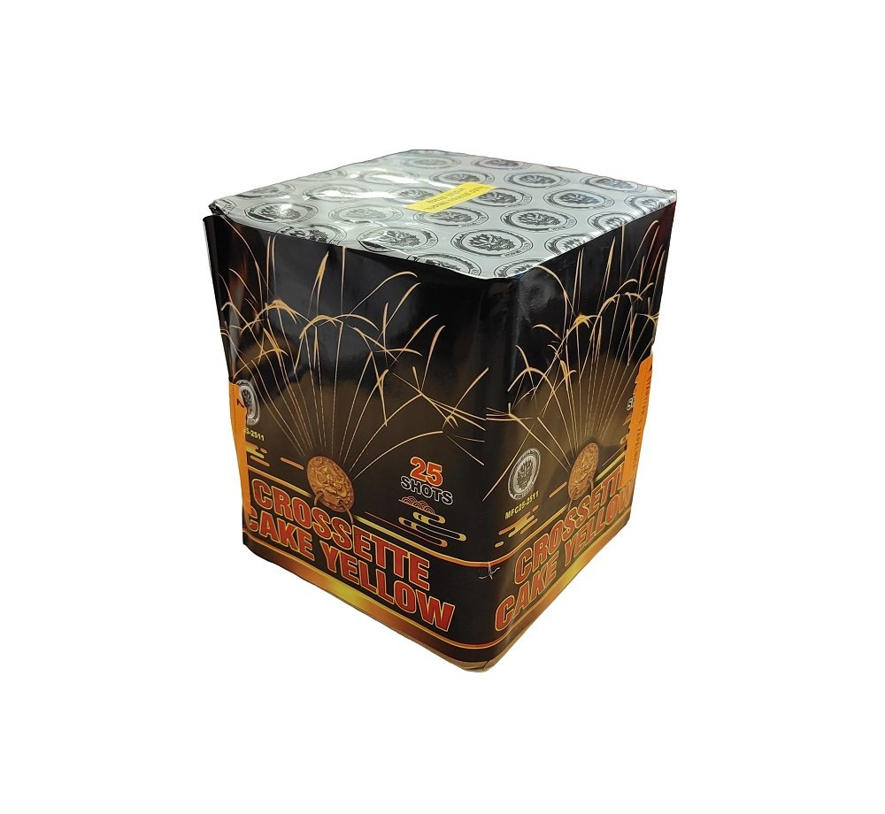 Tichý kompakt s 25 ranami žlutých crossette efektů. Skvělý na oslavy – výška 25 m, trvání 30 s. Více informací
