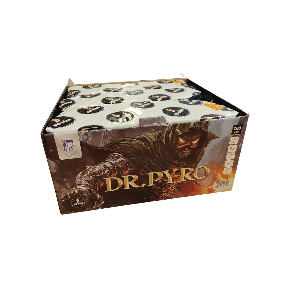 Dr. Pyro je svižný a efektově pestrý sestavený ohňostroj se 100 ranami, který vystřeluje pod úhlem a vytváří prostorově bohatý a dynamický světelný zážitek. Efekty šlehají až do výšky 25 metrů a celý ohňostroj zaujme nejen barvami, ale i skvělým rytmem a gradací.